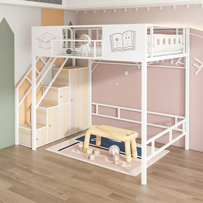 新款铁艺高架床多功能阁楼床简约省空间小户型床下桌铁架床北欧