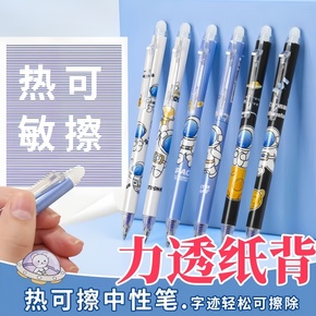 宇航员热可擦中性笔黑色0.5mm晶蓝色小学生可檫笔水笔芯水性碳素