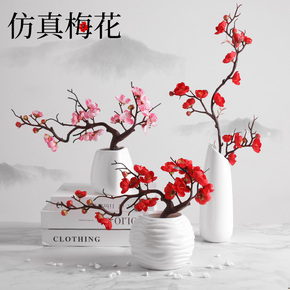 仿真梅花桃花枝摆件客厅干花盆景腊梅摆设花盆栽客厅室内装饰假花