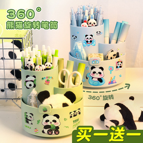 可爱熊猫笔筒!360度旋转笔筒儿童创意多功能文具收纳盒男孩女孩小学生桌