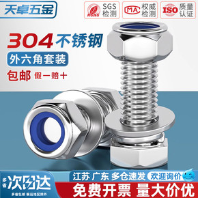 M3-M20 防松螺丝304不锈钢外六角组合螺母套装锁紧M4M5M6M