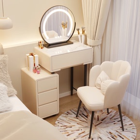 实木梳妆台卧室现代简约小户型迷你奶油风简易化妆桌收纳柜一体