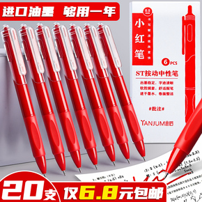 红笔红色中性笔老师专用批改作业水笔按动圆珠笔学生用0.5碳素考试红笔芯