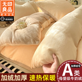 无印良品珊瑚牛奶绒被套加厚加绒单人床上被罩床品秋冬床单奶油风