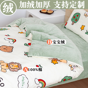 定做ab面纯棉牛奶珊瑚绒被套单件加厚法兰绒毯单面绒全棉被罩冬天
