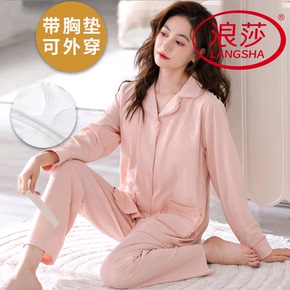 浪莎棉质带胸垫睡衣女春秋季长袖长裤韩式薄款家居服2025新款