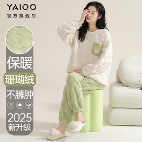 雅鹿珊瑚绒女睡衣法兰绒秋冬季保暖加绒加厚家居服套装新款可外穿
