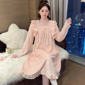 海岛绒睡裙女2025秋冬宫廷风大码200斤可爱公主风保暖宽松连衣裙