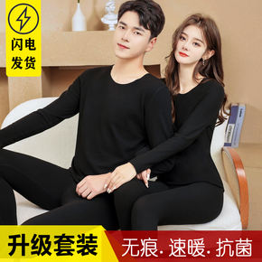 德绒无痕保暖内衣套装男女士大码加绒加厚发热秋衣秋裤情侣打底衫