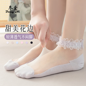 袜子女夏季丝袜花边可爱防臭花边水晶袜透气防滑棉底玻璃丝袜短袜