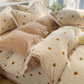 冬季加厚牛奶绒豆豆绒床盖四件套珊瑚法兰绒双面加绒被套冬天床品