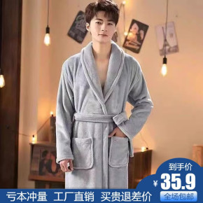珊瑚绒睡袍男士冬季加绒保暖情侣睡衣法兰绒浴袍女中长中厚款浴衣