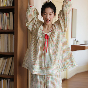 法式高级感棉纱睡衣女款碎花春秋女士纯棉布料100全棉家居服套装