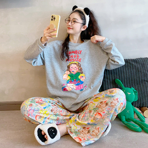 韩版卡通睡衣女长袖春秋冬加厚纯棉甜美可爱休闲可外穿圆领家居服