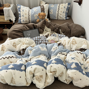 ins费尔岛风狗狗冬季保暖舒适牛奶绒四件套加厚珊瑚绒学生三件套