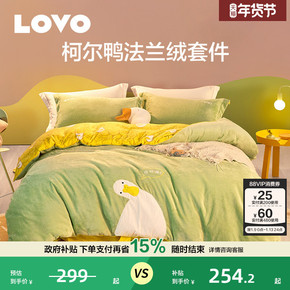 罗莱生活LOVO乐蜗牛奶绒四件套珊瑚绒床单法兰绒被套冬宜居家送礼
