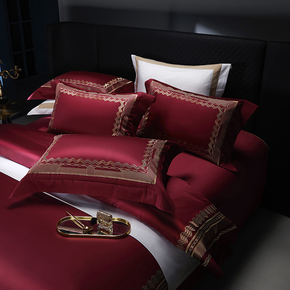 意大利140支长绒棉四件套酒红色高档婚庆全棉别墅纯棉床上用品4件