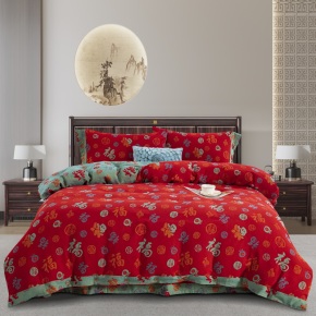 A类双层纱百福被纯棉百福字四件套床上用品送妈妈回礼婆婆四季款
