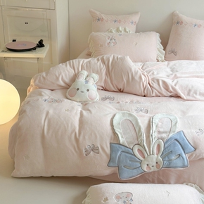可爱兔子冬季牛奶绒四件套加厚双面珊瑚绒儿童少女公主风床上被套