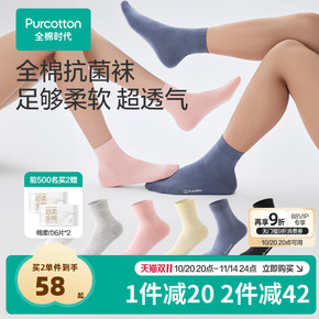 全棉时代男女袜子情侣款全棉5A抗菌透气船袜中筒袜舒适运动
