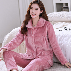 加厚秋冬季珊瑚绒睡衣女套装法兰绒保暖可外穿加绒长袖宽松家居服