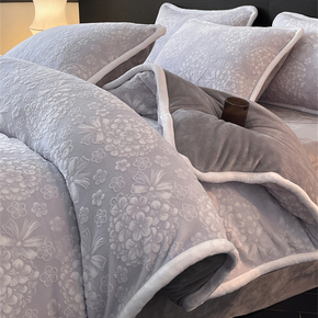 2025新款雕花牛奶绒四件套加厚冬季高级感双面珊瑚绒被套床单笠式