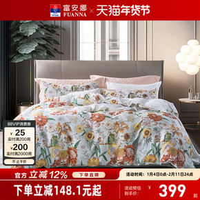富安娜家纺四件套全棉纯棉100床上用品宿舍床单被套春夏床品套件