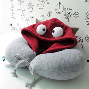 PLUMO皮洛姆可爱连帽U型枕卡通护颈枕午睡旅行枕卡通头枕 U猫猫