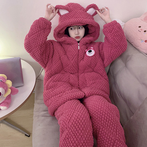 三层夹棉超厚睡衣女2025冬季新款珊瑚绒加厚加绒可外穿保暖家居服