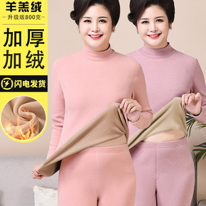 中老年保暖内衣女一体羊羔绒加厚加绒套装中领秋衣秋奶奶妈妈冬