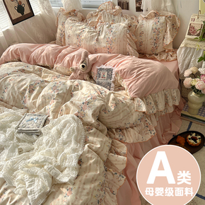 法式花边床上四件套纯棉全棉2025碎花床裙被套床单宿舍床品三件套