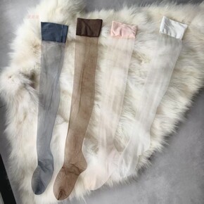 0D黑丝过膝袜高透长筒袜女半截过膝白丝大腿袜纯欲丝袜丝滑512针