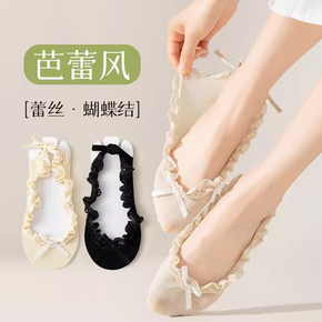 芭蕾舞风袜子女款夏季薄款花边船袜夏天蕾丝短袜配小皮鞋哇哒系袜