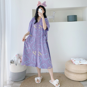 V领短袖夏季卡通纯棉加长款睡裙开衫加加大码孕妇胖MM200斤睡衣女