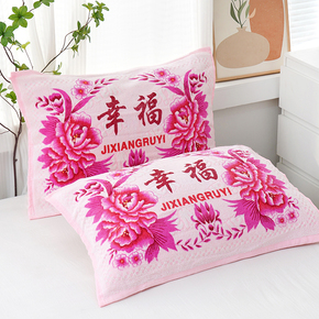 经典怀旧老式枕巾结婚回礼割绒印花加厚大枕巾学生劳保枕巾一对装