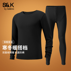 班尼路S&K系列男士冬季黑色套装男加绒加厚双面绒德保暖内衣潮LF