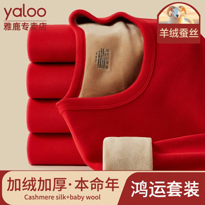 雅鹿本命年保暖内衣套装加绒加厚男女士马年红色结婚衣服秋衣秋裤