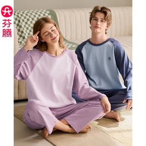 芬腾情侣睡衣春秋季纯棉长袖套装男女士宽松休闲加大码全棉家居服