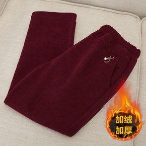 加绒加厚灯芯绒妈妈裤子女冬外穿中老年装直筒休闲保暖羊羔绒睡裤