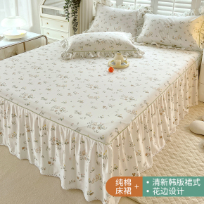 公主风纯棉床裙式床罩单件1米8床防滑蕾丝花边床套2m春夏全棉床裙