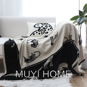 北欧高级毛毯针织毯复古客厅沙发毯办公室午休毯子午睡毯黑色盖毯