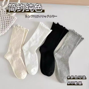 堆堆袜子女夏季薄款中筒花边袜镂空网眼透气日系夏天黑白长筒女袜