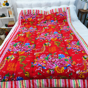 东北大花布凤凰牡丹老式包边被子棉被褥面结婚用传统手工棉花喜被