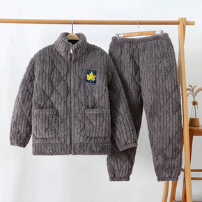 睡衣男士冬季珊瑚绒青年三层加厚加绒夹棉袄保暖法兰绒家居服套装
