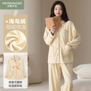 芬腾可安加厚保暖海岛绒睡衣女款冬季2025新款家居服珊瑚绒秋冬款