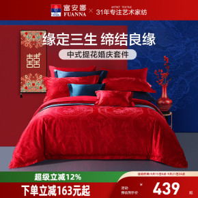 富安娜结婚四件套婚庆红色纯棉床上用品喜庆床单婚嫁喜被新婚被套