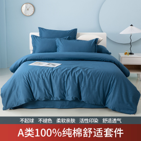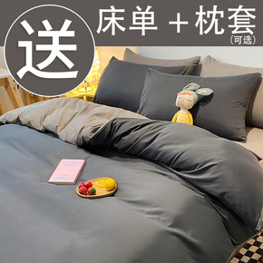 A类纯棉床上用品四件套纯色被套床单双人被罩单人灰色全棉三件套4