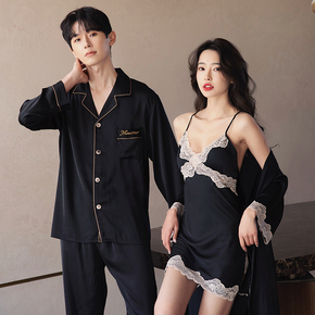 睡衣女春秋款高级感男士长袖套装情侣家居服夏性感冰丝睡裙两件套