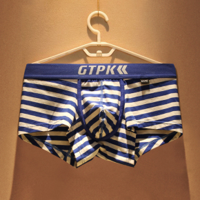 男士内裤男纯棉平角裤条纹个性潮流青年学生四角短裤头透气底裤衩
