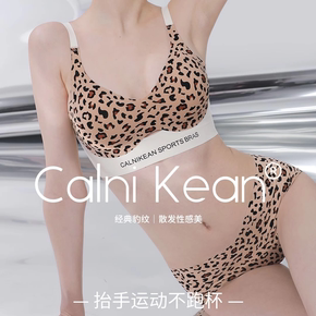 Calnikean豹纹奶皮子套装软支撑性感女士内衣无痕运动防震文胸罩